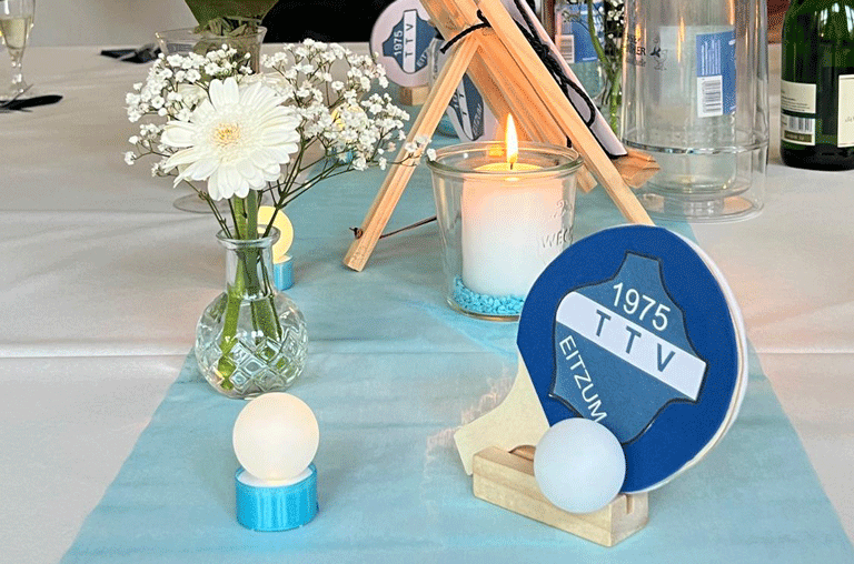 Beitragsbild: Die Jubiläumsfeier wurde mit passenden Schlägern dekoriert. Fotos: Tischtennisverein Eitzum