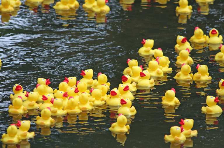 Beitragsbild: Im August wird der Lutterbach wieder voll von quietschgelben Enten. Foto: Stock
