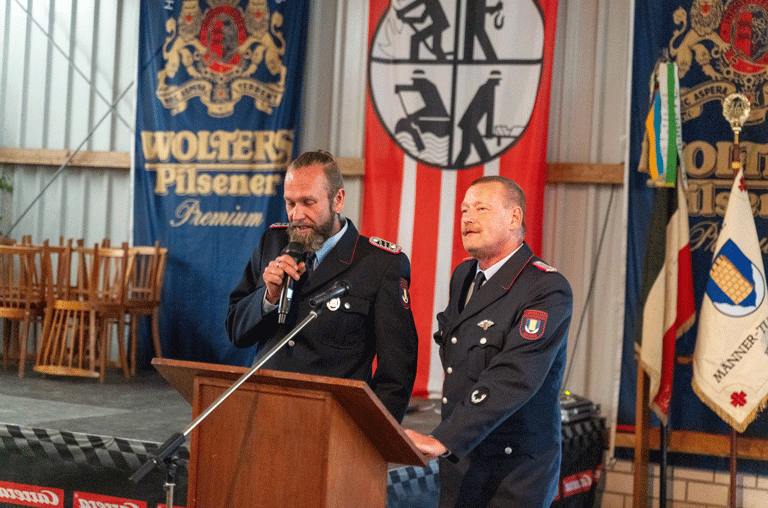 Der Ortsbrandmeister Peter Wieneber und der stellvertretende Ortsbrandmeister Steven Becker begrüßten alle Kameradinnen und Kameraden, Bürger und geladene Gäste zu diesem feierlichen Anlass. Zahlreiche Stimmen aus regionaler Politik, örtlichen Vereinen und benachbarten Feuerwehren gratulierten der Uehrder Wehr und überreichten zahlreiche Geschenke.