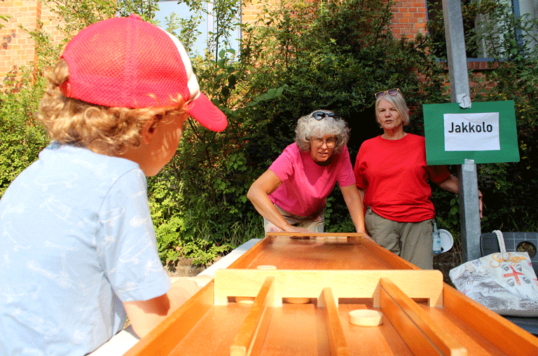Beitragsbild: Heike Petersen (links) aus Schöppenstedt war mit ihrer Familie vor Ort, Mitarbeiterin Gudrun Kramer-Grodd betreute die Spielestationen. Fotos: Sophie Weinmann