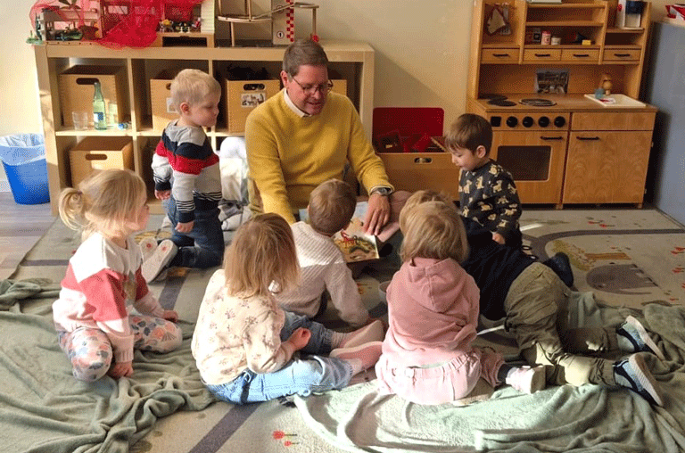 Beitragsbild: Marcus Bosse las in der Kita „Kleine Strolche“ in Kissenbrück vor. Foto: privat