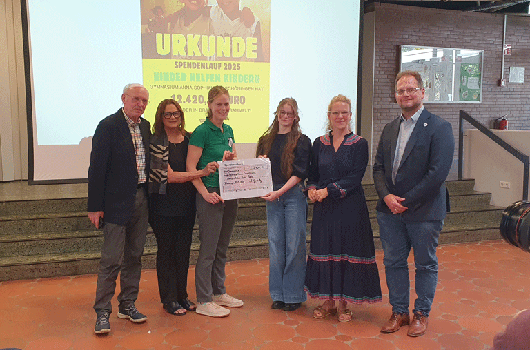 Auch die sportliche Leistung der Jugendlichen fand Anerkennung. „Es ist unglaublich, mit welcher Ausdauer und Freude unsere Schülerinnen und Schüler gelaufen sind. Jede Runde, jeder Schritt hat dazu beigetragen, dass wir mit dieser großartigen Summe nun ganz konkret helfen können. Dass wir damit das Dach der Einrichtung in Brasilien erneuern und so sichere Räume für Kinder und Jugendliche schaffen, macht mich sehr stolz“, erklärte Organisatorin Anne Sponholz.