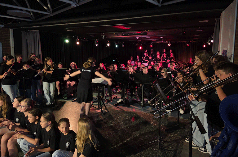 Denn viele der jungen Musikerinnen und Musiker im Orchester haben ihren Weg in der Bläserklasse 5 begonnen. Die stand direkt im Anschluss auf der Bühne. Trotz aller Aufregung überzeugten die Jüngsten mit mehrstimmigem Spiel und spürbarer Freude am gemeinsamen Musizieren.