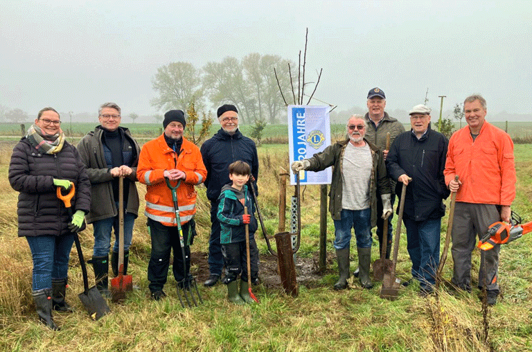 Nebel, Nieselregen und gute Laune: Unter diesen Bedingungen trafen sich am Samstag Mitglieder des Lions Clubs Kaiser Lothar aus Königslutter und Vertreter des Ortsrats Klein Steimke-Glentorf zu einer besonderen Aktion. Gemeinsam pflanzten sie auf einer Streuobstwiese südlich von Glentorf neue Obstbäume – ein Beitrag zum Klimaschutz und zur Förderung der Artenvielfalt.