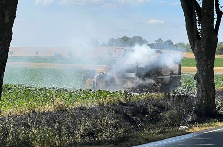 Auf einem Feld an der B79 zwischen Roklum und Mattierzoll bei Schöppenstedt brannte ein Traktor. Der Brand war weithin zu sehen, denn der Teleskoplader qualmte ziemlich. Mehrere Einsatzwägen der Freiwilligen Feuerwehren Schöppenstedt, Winnigstedt, Wetzleben-Hedeper, Remlingen, Roklum, Sottmar und Wittmar waren vor Ort bei den Löscharbeiten.