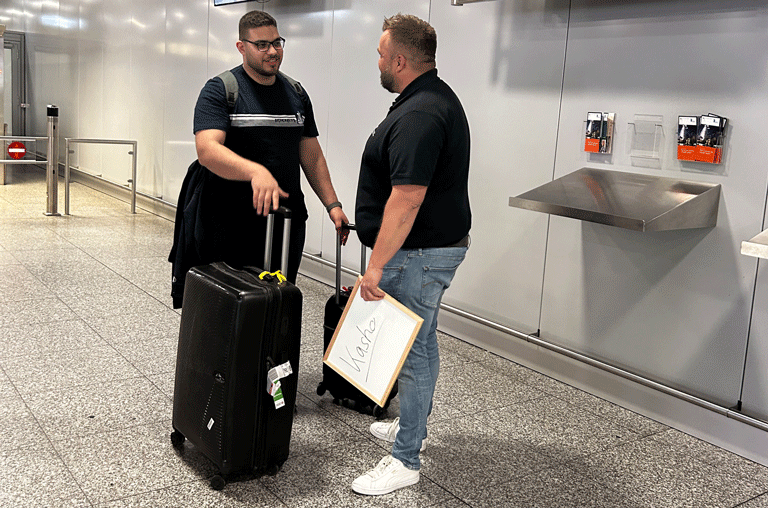 Frederic Knigge, der Referent für Integrationsmanagement der Klinik, holte seinen neuen Kollegen vom Gate am Flughafen Hannover ab. Der 24-jährige Jordanier ist einer von zwei neuen Mitarbeitern für das APZ und eine sogenannte Triple Win Pflegekraft.